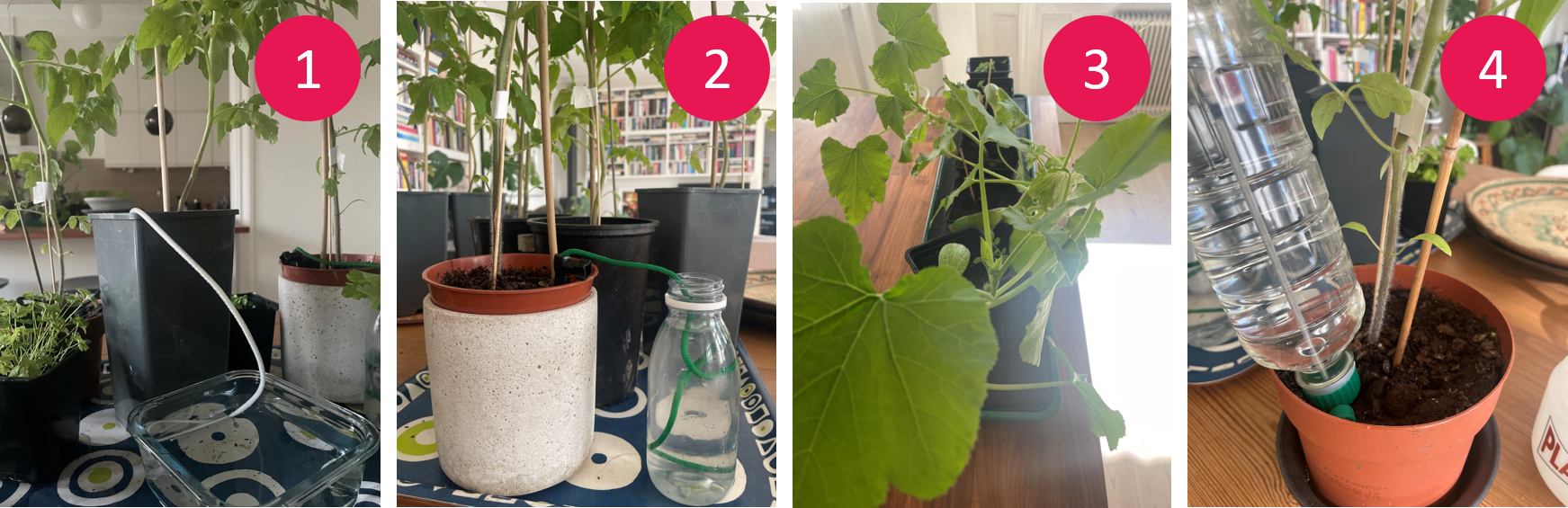 Inför sommaren har två medarbetare testat fyra enkla semestervattnare. Upplägget var enkelt: De använde instruktionen som följde med i förpackningen rakt upp och ner. Jorden var genomvattnad när de började. Både stora och små krukor i keramik och i plast användes. Alla utom en fungerade bra.