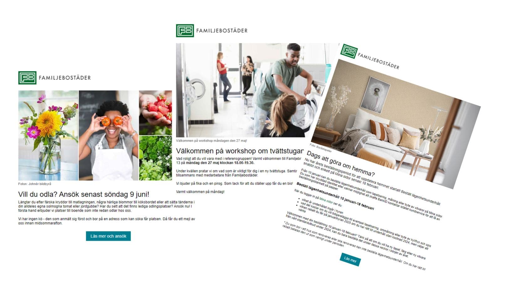 Om du inte har en e-postadress kan du förstås alltid nå oss via vår kundservice på telefonnummer 08-737 20 00 och information finns även i portar och här på familjebostader.com