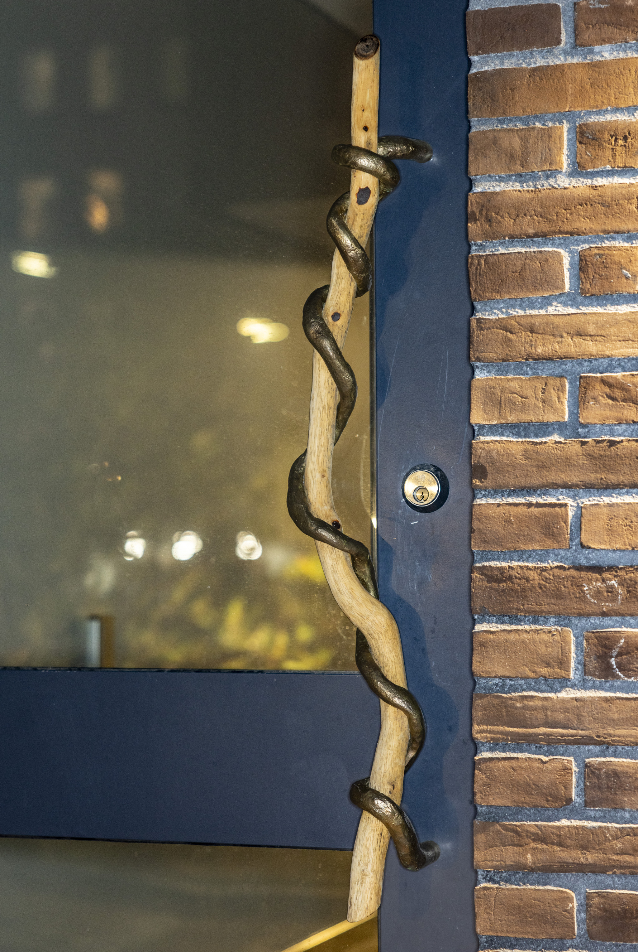 Även entréerna har fått ett konstnärligt lyft. De specialgjutna dörrhandtagen i brons slingrar sig om ekgrenar – en hyllning till de träd som en gång stod här, på platsen där Farsta sjukhem tidigare låg.